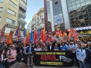 İzmir Emek ve Demokrasi Güçleri, “Sağlıkta özelleştirmenin son kurbanları : Bebekler …Kamu sağlığı hemen şimdi” pankartı açarak, basın açıklaması yaptı. Katılımcılar, “Sağlık hakkı satılamaz”, “Sağlık Bakanı istifa”, “Sağlıkta dönüşüm ölüm demektir.”, “AKP elini bebeklerden çek”, “Bebeklerin katili sermaye devleti”, “Ya kapitalist barbarlık ya sosyalizm”, “Katillerden hesabı halk soracak”, “Sağlıkta ticaret ölüm demektir”, “Yenidoğan çetesi …
