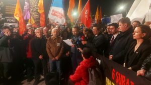 İzmir Emek ve Demokrasi Güçleri Van Büyükşehir belediye Başkanı olarak seçilen DEM adayı Abdullah Zeydan’ ın yerine hukuk dışı bir şekilde AKP adayının Belediye Başkanı olarak belirlenmesini Türkan Saylan Kültür Merkezi önünde protesto etti. Basın açıklamasının ardından barışçıl bir biçimde yürüyüşe geçen bir gruba polis biber gazı ve şiddet uyguladı. Altı kişi gözaltına alındı. İzmir …