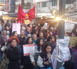 İzmir Kadın Platformu, 25 Kasım Kadına Yönelik Şiddetle Uluslararası Mücadele Günü’nde Alsancak Kıbrıs Şehitleri caddesinde yürüyüş düzenledi. Kadınlar, “Savaşa, yoksulluğa, gericiliğe, erkek-devlet şiddetine karşı mücadeleyi yükseltiyoruz” yazılı pankartı arkasında toplanarak, Türkan Saylan Kültür Merkezi önüne yürüdü. HEDEP İzmir Milletvekili Burcugül Çubuk’un da katıldığı yürüyüş boyunca kadınlar; “Kadın Cinayetleri Politiktir”, “Krizin yükü patronlara”, “kadınlar işe çocuklar …