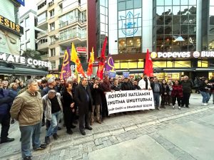 İzmir Emek ve Demokrasi Güçleri, Alsancak Türkan Saylan Kültür Merkezi önünde Roboski Katliamında yaşamını yitirenleri andı. Basın açıklaması metnini DİSK Ege Bölge Temsilcisi Memiş Sarı okudu. Açıklama şöyle; “Değerli dostlar, İzmir’in demokrat insanları, İzmir’in devrimcileri. Bugün, Roboski Katliamı’nın 12. yıl dönümünde, kaybettiğimiz canları anmak ve adalet talebimizi bir kez daha haykırmak için bir aradayız. 28.12.2011’de, …