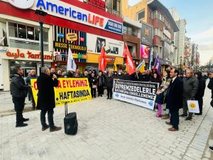 Karşıyaka çarşı girişinde KHK’li kamu emekçileri 241.hafta da oturma eylemini yaptı. Haksız, hukuksuz, ihraçlara karşı direnen kamu emekçileri ve katılımcı demokrasi güçleri depremin yıkıma yol açtığı kentlerdeki insanların sesini ve dayanışmanın gücünü dile getirdi. KESK İzmir Şubeler Platformu adına yapılan açıklama şöyle; “Basına ve kamuoyuna 6 Şubat 2023 tarihinde meydana gelen iki büyük deprem ülkemizde …