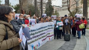 İzmir’de hak örgütleri ve İzmir Barosu, 10 Aralık Dünya İnsan Hakları Günü’nde Alsancak’ta bulunan 10 Ekim Anıtı’nda bir araya geldi. Basın açıklaması yaptı. Açıklamada, ‘Şebnem Korur Fincancı’ya özgürlük’ yazılı dövizler açıldı. Kurumlar adına ortak açıklamayı TİHV Genel Sekreteri Coşkun Üsterci, okudu. Açıklama şöyle; “İnsan Hakları Evrensel Bildirgesi’nin Kabul Edilişinin 74. Yılında Ekonomik krize ve Yoksulluğa …