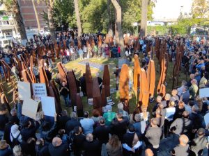 10 Ekim Ankara Katliamı’nın yıldönümünde İzmir Emek ve Demokrasi Güçleri, katledilenleri anmak ve katliamı lanetlemek için, hayatını kaybedenlerin anısına oluşturulan “Hayat Çemberi” adı verilen ve Alsancak Gar’ı karşısındaki parkta 10 Ekim Anıtında toplandı. Anıt alanına yitirdiklerimizin fotoğrafları ve karanfiller bırakan yüzlerce katılımcı, katillerden, katliama engel olmayıp destek verenleri, yol açanları, katliamın ardından ambulans yerine toma …