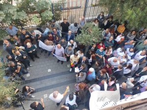 İzmir Emek ve Demokrasi Güçleri, İzmir Tabip Odası binası önünde, Türk Tabipler Birliği Merkez Konseyi Başkanı ve Türkiye İnsan Hakları Vakfı Yönetim Kurulu üyesi Prof. Dr. Şebnem Korur Fincancı’nın evinin aranarak gözaltına alınmasını protesto etti, derhal serbest bırakılmasını istedi ve basın açıklaması yaptı. Katılımcılar sık sık “Gözaltılar, tutuklamalar, baskılar bizi yıldıramaz”, “Şebnem Korur Fincancı derhal …