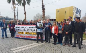 İzmir Emek ve Demokrasi Güçleri Konak’ta Atatürk Meydanında, tüm emekçileri 3 Nisan Pazar günü Gündoğdu Meydanında yapacağı işsizliğe, yoksulluğa, zamlara, sömürüye ve savaşa karşı buluşmaya çağıran bir basın açıklaması gerçekleştirdi. Açıklama yapıldıktan sonra katılımcılar çağrı bildirilerini dağıttı. Açıklamayı Disk Ege Bölge Temsilcisi Memiş Sarı okudu. Açıklama şöyle; “Kamu emekçisi, işçisi, asgari ücretlisi ile emeklisi, işsizi, …