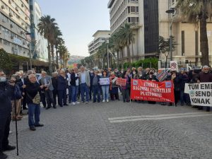 İzmir’de emekliler siyasi iktidarın ekonomi politikalarına karşı insanca yaşam için Ankara’ya yürümek ve Anıtparkta buluşmak için sokağa çıktı. Elektrik, doğal gaz, akaryakıt ve gıda zamlarına karşı, bayram ikramiyesinin bayram yaptıracak ikramiye düzeyinde olması, emekli aylıklarının insanca yaşama yetecek düzeyde olması, sağlık hizmetinden katkı payının kaldırılması ve emeklilerin sendikal haklarının önündeki engellerin kaldırılması için “Tüm Emekliler …