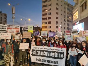 İzmir Kadın Platformu Alsancak Kıbrıs Şehitleri Caddesi girişinde “Yaşamı savunmak hapsedilemez Çilem Doğan’a Özgürlük” pankartı arkasında toplanarak, Yargıtay tarafından cezası onanan Çilem Doğan’a verilen 15 yıl hapis cezasının haksız ve hukuksuz olduğunu, yaşam hakkını savunmasının meşru ve yasal olduğunu belirtti. Kadınlar açıklama sırasında “Erkek vuruyor devlet koruyor, bu düzeni kadınlar değiştirecek”, “Erkek adalet değil gerçek …
