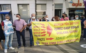 Kesk İzmir Şubeler Platformu ve İzmir Eğitim-Sen 2 No’lu Şube, Kanun Hükmünde Kararname (KHK) ile bir gecede hukuksuz haksız bir biçimde işinden olan kamu emekçilerinin işlerine geri dönebilmeleri için başlattığı mücadelenin 175 haftasında da, basın açıklaması ve oturma eylemini Karşıyaka Çarşı’da gerçekleştirdi. Açıklamayı KESK İzmir Şubeler Platform Dönem Yürütmesi” adına BES (Büro Emekçileri Sendikası) İzmir …