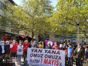 İzmir Emek ve Demokrasi güçleri ” YAN YANA OMUZ OMUZA HAYDI 1 MAYIS ‘A” şiarıyla Kemeraltı Çarşısı girişinde açıklama yaptı. Açıklamayı Disk Ege Bölge Temsilcisi Memiş Sarı okudu. Açıklama şöyle; “Sağlıklı, güvenceli ve insanca bir yaşam için HAYDİ 1 MAYIS’A! Ekonomik kriz ve üzerine gelen Covid-19 salgınıyla zor günler geçiriyoruz: işçiye emekçiye tedbir yok, aşı …