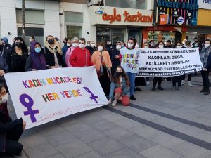 Kadına yönelik şiddetle mücadele için devlete önemli yükümlülükler getiren İstanbul Sözleşmesinin siyasi iktidar tarafından TBMM’nin iradesi yok sayılarak Cumhurbaşkanlığı kararnamesi ile hukuk dışı bir biçimde fesh edilmesi karşısında İzmir’de kadınlar sokağa çıktı. Türkan Saylan Kültür merkezi önünde toplanan kadınlar, “Sözleşmeyi nasıl kazandıysak öyle savunacağız.” , “İstanbul Sözleşmesi bizimdir, vazgeçmeyiz ” diye haykırdılar. Kadınların açıklaması şöyle; …