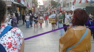 İzmir Karşıyaka Çarşı girişinde Kadınlar Birlikte Güçlü platformu çocuk istismarı ve kadına şiddete karşı basın açıklaması yaptı. Basın açıklamasına CHP İzmir Milletvekili Sevda Erdan Kılıç ve HDP İzmir Miletvekili Serpil Kemalbay da katıldı. Açıklama: “Çocuk istismarının meşrulaştırılmasına izin vermedik, vermeyeceğiz. Dünya genelini etkisi altına almış pandemi günlerinde biz kadınların bugün sokakta buluşmasının çok önemli bir …