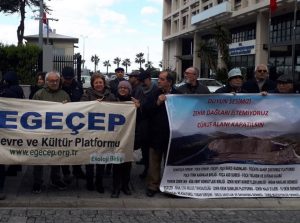 Foça Gölyüzü’ne 2011 yılından bu yana dökülen demir çelik işletmelerinin cüruflarının yöre halkının sağlığını, can ve mal güvenliğini tehdit eder duruma gelmesine ve ‘Biyo Kütle Tesisleri’ kurulmasına karşı çıkan yöre halkı, çevre ve demokratik kitle örgütleri ‘Cürüf Alanının’ kapatılması ve biyokütle tesisi kurulmasına karşı eski Sümerbank önünde açıklama yaptı. Açıklamadan sonra yöre halkından ikibinin üzerindeki …