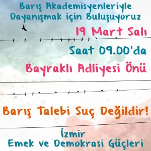 İzmir Emek ve Demokrasi Güçleri, 21 Mart perşembe günü saat 16.00 da Gündoğdu Meydanı’nda kutlanacak Newroz mitingine katılım çağrısında bulunmak için Eğitim Sen 1 Nolu Şube’de basın toplantısı düzenledi. Açıklamayı KESK Dönem Sözcüsü ve Ses İzmir Şube Eş Başkanı Hülya Baran Ulaşoğlu yaptı. Ulaşoğlu ; “Bahar geliyor, doğa tüm renkleriyle, tüm çeşitliliğiyle, yeniden kendini var …