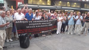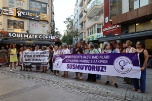 İzmir’de bir araya gelen “Barışa İhtiyacımız Var Kadın İnisiyatifi” ve “Feminist Gece Yürüyüşü Ekibi” Suriye’de Hey’et Tahrir eş-Şam (HTŞ) ve ona bağlı cihatçı grupların özellikle Alevi kadınlara yönelik saldırılarına karşı Türkan Saylan Kültür Merkezi önünde eylem düzenledi. “Allevi kadınların yanındayız. Soykırım ve patriyarkaya karşı isyandayız “. “Suriye’de HTŞ alevi kadınları soykırıma maruz bırakıyor. Susmuyoruz” pankartları …