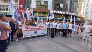 KESK İzmir Şubeler Platformu kamu emekçilerinin toplu sözleşme görüşme süreci ile ilgili Türkan Saylan Kültür Merkezi önünde basın açıklaması yaptı. Katılımcılar, “İnsanca bir yaşam istiyoruz”, “Sermayeye değil emekçiye bütçe”, “Toplu sözleşme hakkımız grev silahımız”, “Birleşe birleşe kazanacağız”, ” AKP elini ekmeğimden çek”, “Hak verilmez alınır, zafer sokakta kazanılır” sloganlarını attı. Açıklamayı KESK Dönem Sözcüsü Bülent …