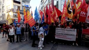 İsrail siyonizminin 613 gündür, Gazze’de ellibin Filistinliyi katlettiği, saldırılarını sürdürdüğü koşullarda Filistin halkıyla dayanışmak için Madleen gemisi ile Gazze’ye yardım götürenlerin, gözaltına alınması İzmir’de protesto edildi. Filistin Özgürlük Platformu, siyasi parti ve kurumlar, sosyalist dergi çevreleri yaptıkları açıklamalarda İsrail’le tüm askeri-ekonomik-ticari ilişkilerin sona erdirilmesi ve İsrail’e tam ambargo uygulanması ve siyonist rejimin savaş suçlarının …