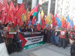 İzmir Emek ve Demokrasi Güçleri, İsrail’in Gazze’de sürdürdüğü soykırımın 2. yılında Alsancak Türkan Saylan Kültür Merkezi önünde bir basın açıklaması düzenledi. Eylem öncesinde Emek Partisi (EMEP), Emekçi Hareket Partisi (EHP), DEM Parti, Sosyalist Meclisler Federasyonu (SMF), Türkiye İşçi Partisi (TİP) ve Toplumsal Özgürlük Partisi (TÖP) üyeleri Alsancak ÖSYM önünde toplanarak Türkan Saylan Kültür Merkezi’ne yürüdü. …