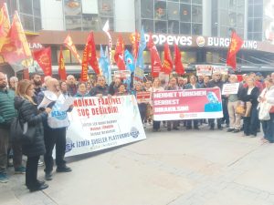 İzmir’de Mehmet Türkmen’e Özgürlük Çağrısı; Mehmet Türkmen Serbest Bırakılsın, Sendikal Faaliyet Suç Değildir.ir.