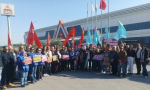 İzmir’de Ege Serbest Bölgesi’nde direnişlerini sürdüren DIGEL Tekstil ve Temel Conta işçileri, 8 Mart Dünya Emekçi Kadınlar Günü dolayısıyla etkinlik düzenledi. “8 Mart’ta susmuyoruz, boyun eğmiyoruz, itaat etmiyoruz. Grev ve direniş alanlarına çağırıyoruz” sloganıyla gerçekleştirilen etkinlik, DIGEL Tekstil işçilerinin direniş çadırının bulunduğu alanda yapıldı. Etkinliğe Teksif Sendikası Genel Başkan Danışmanı Makum Alagöz, Petrol-İş Sendikası Aliağa …