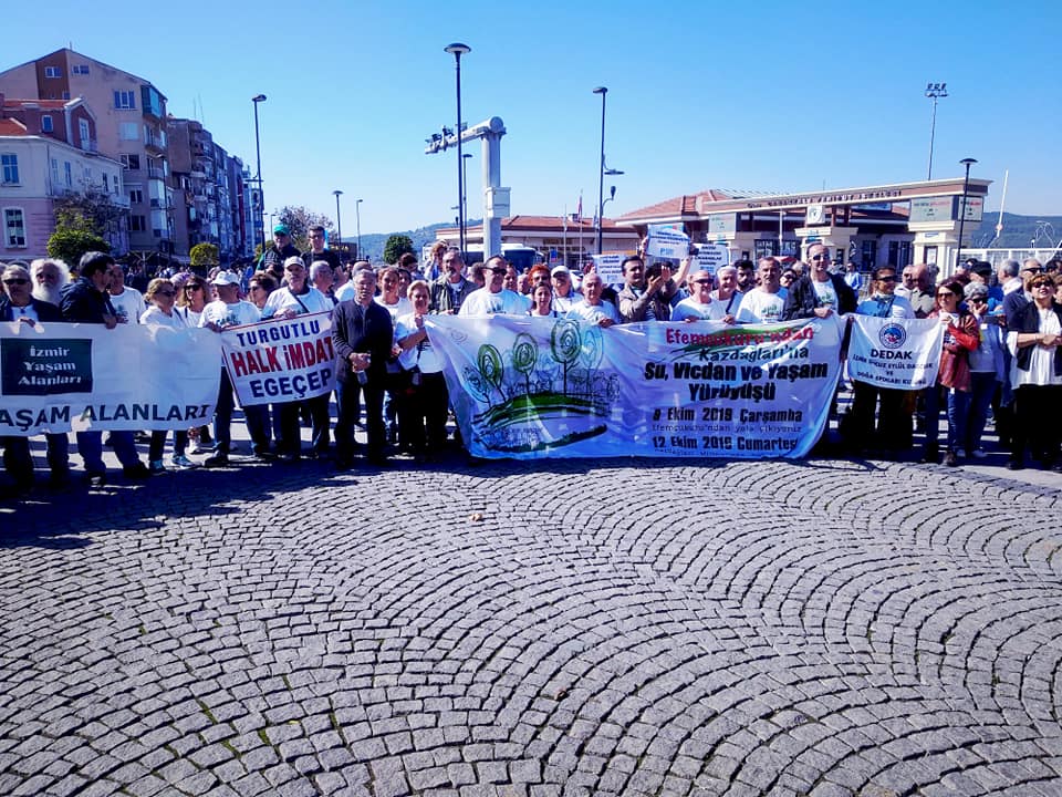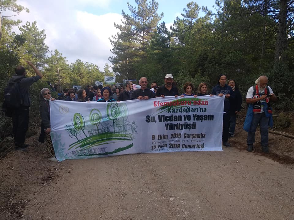 Gerçekleştirilen basın açıklamasına Körfez Dayanışması, Kazdağları Sanatçı Dayanışması, Efem Çukuru Yürüyüşçüleri, Egecep, İzmir Yaşam alanları,Ayvalık tabiat platformu, Esenyurt doğa ile dayanışma inisiyatifi, Kazdağları İstanbul Dayanışması, Yalova kazdağları dayanışması, Kazdağları kardeşliği, Ekoloji Birliği, Politek, Burhaniye Çevre Platformu, Kazdağları Doğal ve Kültürel Varlıkları Koruma Derneği , Gökkuşağı Dergisi, Bozcaada Forum, Gömeç çevre Platformu, Demokratik Kitle örgütleri temsilcileri ve çevreciler katıldı. Çevreciler hep bir ağızdan “Birleşe birleşe kazanacağız!”, “Havama, suyuma, toprağıma dokunma!” dediler. Yapılan konuşmaların ardından gerçekleştirilen basın açıklamasında;