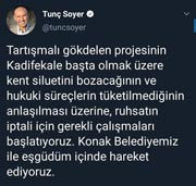 İzmir kent merkezine yapılması planlanan ve geçmiş Konak Belediyesi yönetimi tarafından ruhsatlandırılan kent suçu kapsamındaki gökdelen için Büyükşehir Belediye Başkanı Soyer, yaptığı açıklamada “Tartışmalı gökdelen projesinin Kadifekale başta olmak üzere kent siluetini bozacağının ve hukuki süreçlerin tüketilmediğinin anlaşılması üzerine, ruhsatın iptali için gerekli çalışmaları başlatıyoruz. Konak Belediyemiz ile eşgüdüm içinde hareket ediyoruz” bilgisini paylaştı.