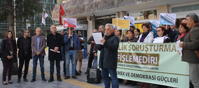 Yetkili makamların talimatıyla yapılan soruşturmalar AYM tarafından iptal edilmişti. Siyasi iktidarın yeni bir manevrası ile ‘Torba Yasa’ içerisinde bulunan ‘Güvenlik Soruşturmaları- Arşiv Araştırma Yasası’ TBMM de komisyondan geçti ve TBMM ne gidecek. İzmir Emek ve Demokrasi Güçleri bu anti-demokratik uygulamaya karşı basın açıklaması düzenledi ve İzmir Milletvekillerine mektup yoluyla düşüncelerini ileterek, hukuk dışı faşizan uygulamanın durdurulmasını istedi.