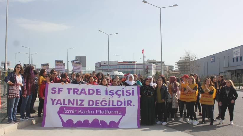 İzmir Kadın Platformu 8 Mart Dünya Kadınlar Günü öncesinde sendikalaştıkları için işten çıkarılan SF Trade İşçileri ile dayanışma amacıyla Gaziemir’de bulunan Ege Serbest Sanayi Bölgesi önünde müzik dinletisi ve serbest kürsü ile fikir, görüş paylaşımı gerçekleştirdi.
