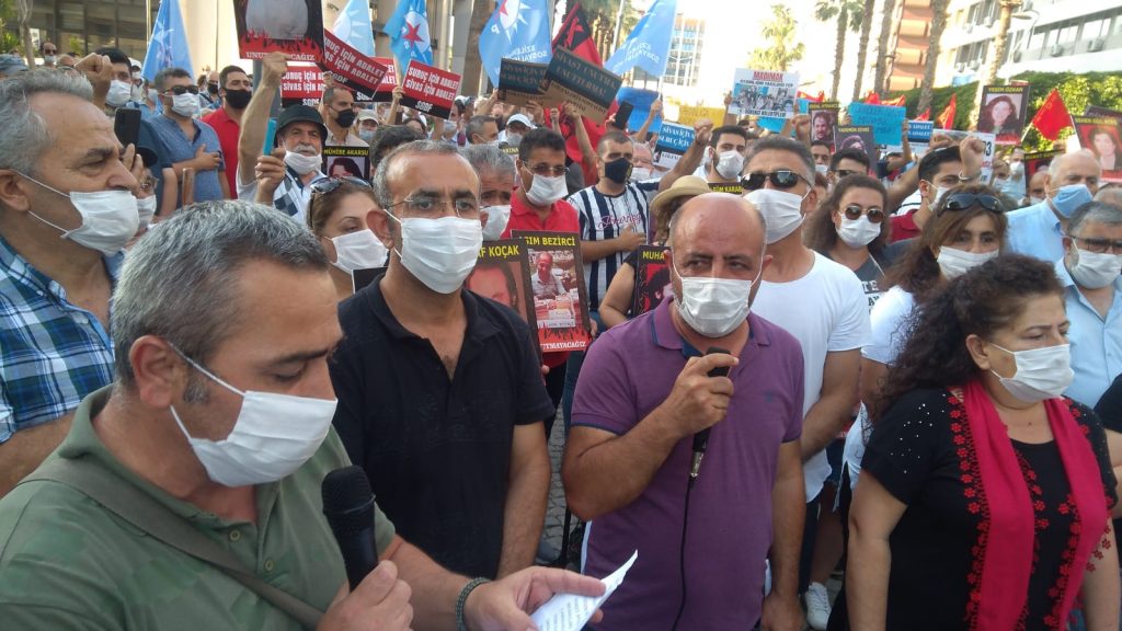 Sivas’ta 2 Temmuz 1993 tarihinde katledilen 33 aydın, yazar, şair, sanatçı ve akademisyen İzmir Konak’ta eski Sümerbank önünde anıldı. İzmir Alevi Kurum Bileşenleri’nin düzenlediği anmaya İzmir Emek ve Demokrasi Güçleri’de katıldı. Açıklamayı PSKD Genel Merkez yöneticisi Yıldız Yılmaz okudu.