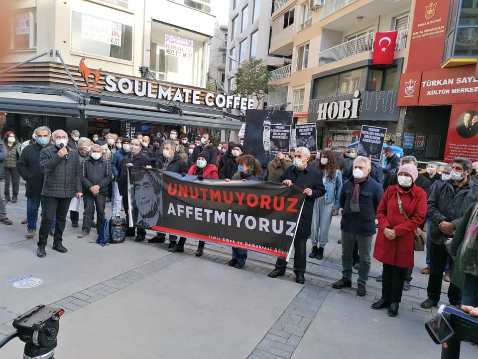 İzmir Emek ve Demokrasi güçleri Türkan Saylan Kültür Merkezi önünde toplanarak Hrant Dink’i katledilişinin 14.yılında “Faşizme İnat Öfkeyle Özlemle Buradayız Ahparig” diye andı..