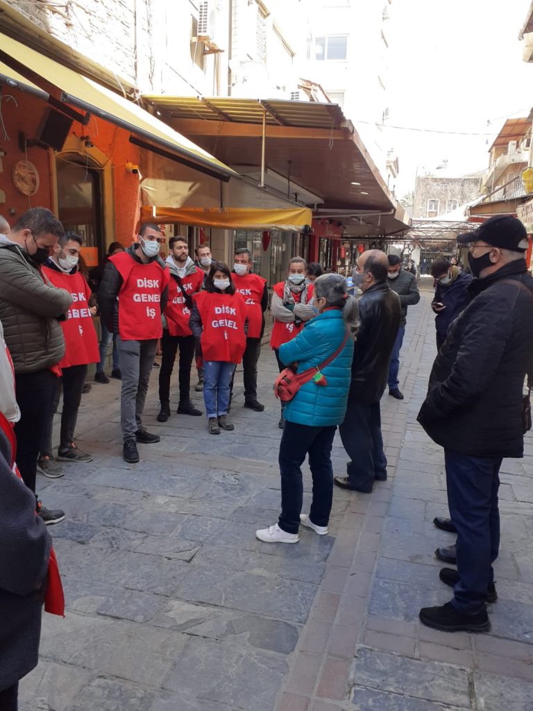 Dayanışma ziyaretimizde yönetim kurulu adına konuşan Günseli Kaya, pandemi sürecinde işsizliğin arttığını, hem kamu sektöründe hem de özel sektörde salgının işten çıkarmalar için fırsat yarattığını belirtti. İmece Dostluk Dayanışma Derneği’nin bileşeni olduğu Emek ve demokrasi güçleriyle birlikte, işten çıkarılmaları iş kaza ve cinayetlerini, üretim ve hizmet alanlarındaki işçilerin ekonomik, sosyal haklarına, örgütlenme haklarına dönük ihlalleri izlediğini belirtti. İhlallere, işten çıkarmalara karşı mücadelede her zaman dayanışma içerisinde olacaklarını; mücadelenin hukuksal alanda olduğu kadar kamusal duyarlılık oluşturmaya dönük olarak ta sürdürülmesi gerektiğini, emekçi sınıfların ve demokrasi güçlerinin ortak çaba ve dayanışmasıyla bu haksızlığın giderileceğini umduklarını söyledi. Yönetim Kurulumuz işçi dostlarımıza mücadelelerinde başarılar dileyerek ilk dayanışma ziyaretini sonlandırdı.