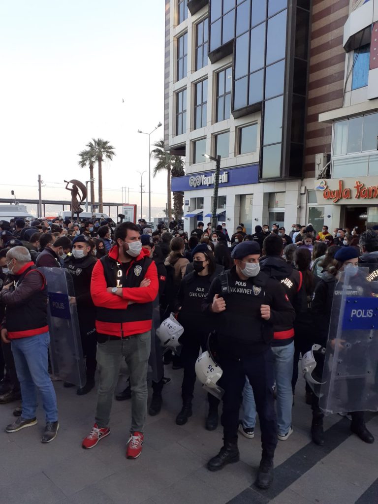 Yapılmak istenen basın açıklaması, KHK lerle ihraçlara karşı, her hafta Çarşamba günleri yapılan KESK eylemi sonrası için planlanmıştı. KESK eyleminden sonra bir araya gelen kadınlara İzmir Güvenlik Şube yetkilileri basın açıklamasına izin vermeyeceklerini belirttiler ve çevik kuvvet kadınları çembere almak istedi. Eylem alanının yakınına çok sayıda çevik kuvvet ve gözaltı aracı da getirilmişti. Kadınlar barışçıl biçimde toplanma ve gösteri hakkının, düşünceyi ifade etmenin bir aracı ve anayasal güvence kadar uluslar arası sözleşmelerle de korunmuş bir hak olduğunu belirterek ısrarcı olunca çevik kuvvet ve Güvenlik şube polislerince abluka altında, gerilimli bir atmosferde açıklamalarına başladılar.