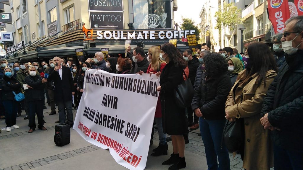 İzmir Emek ve Demokrasi Güçleri HDP Kocaeli Milletvekili Dr. Ömer Faruk Gergerlioğlu’nun milletvekilliğinin düşürülmesi ve HDP’nin kapatılmasına yönelik saldırılar karşısında sokağa çıktı ve Türkan Saylan Kültür merkezi önünde açıklama yaptı.