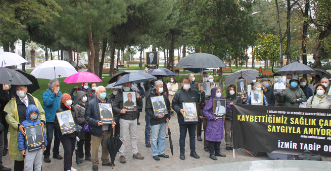 Sağlık emekçilerinin ve demokrasi güçlerinin de katılım gösterdiği anmada, İzmir Tabip Odası Genel Sekreteri Dr. Nuri Seha Yüksel açılış konuşmasında kaybettiğimiz sağlık çalışanlarını andı ve katılanları sağlık çalışanlarının anısına 1 dakikalık saygı duruşunda bulunmaya davet etti.