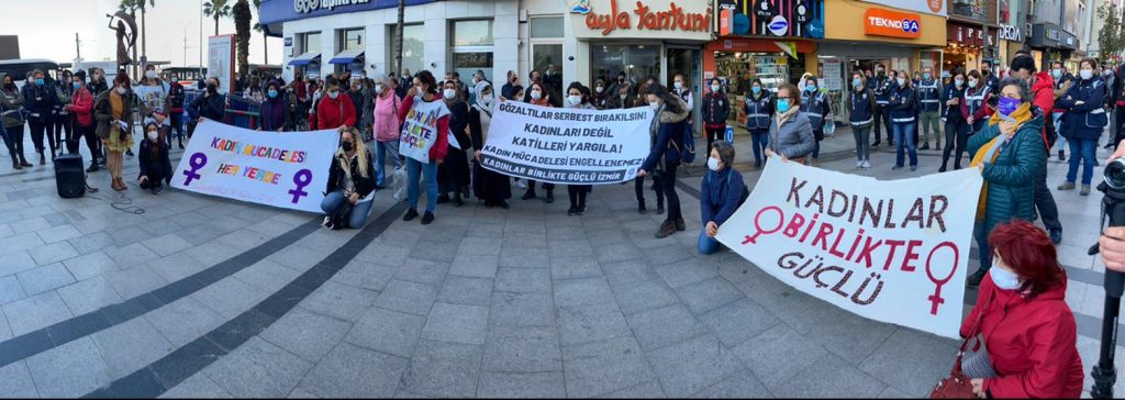 Kadınlar Birlikte Güçlü hareketi İzmir-Karşıyaka Çarşı girişinde eylem yaptı, İstanbul Sözleşmesi’nden vazgeçmediklerini ve Kadınların birlik dayanışma ve mücadele ile her türlü baskı, şiddet ve zulmü yeneceğini açıkladı. Açıklama şöyle;