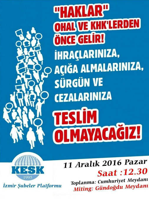 11 Aralık 2016 tarihinde yapılacak olan KESK Bölge Mitingine katılım ve desteğiniz çok önemlidir.