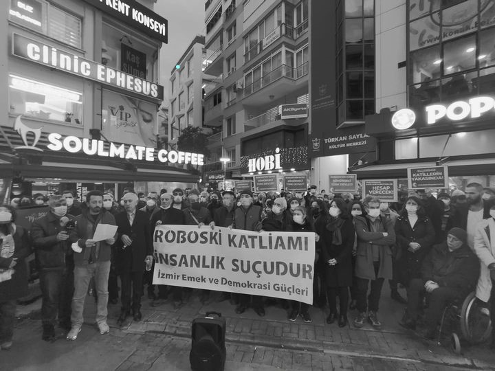 İzmir Emek ve Demokrasi Güçleri Roboski katliamını Türkan saylan Kültür Merkezi önünde lanetledi. Katliamda yaşamını yitiren 34 insanı andı. Roboski’de 19’u çocuk 34 sivil insanın savaş uçaklarıyla bombalanmasının üzerinden on yıl geçmesine karşın emri verenler ve uygulayanlara cezasızlık politikasının sürmesi ve insanlık suçlarının üzerinin örtülmesi politikalarından vazgeçilmesi istendi. Disk Ege Bölge Temsilcisi Memiş Sarı; katliamda yaşamını yitirenleri andı ve onları unutmayacaklarını söyledi. İzmir Emek ve Demokrasi Güçleri adına açıklamayı Kesk Dönem Sözcüsü, Veysel Beyazadam yaptı. Açıklamaya HDP İzmir Milletvekili Serpil Kemalbay ve Musa Piroğlu da katıldı.