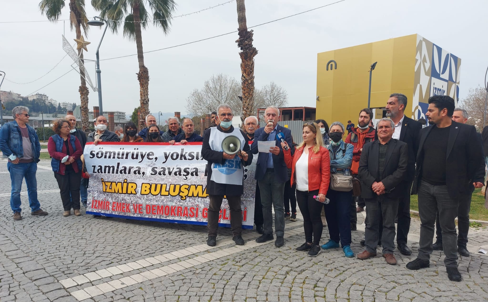 İzmir Emek ve Demokrasi Güçleri Konak’ta Atatürk Meydanında, tüm emekçileri 3 Nisan Pazar günü Gündoğdu Meydanında yapacağı işsizliğe, yoksulluğa, zamlara, sömürüye ve savaşa karşı buluşmaya çağıran bir basın açıklaması gerçekleştirdi. Açıklama yapıldıktan sonra katılımcılar çağrı bildirilerini dağıttı.