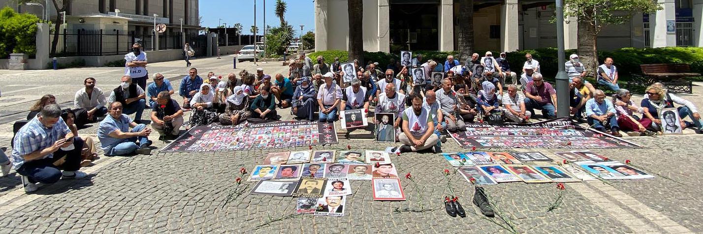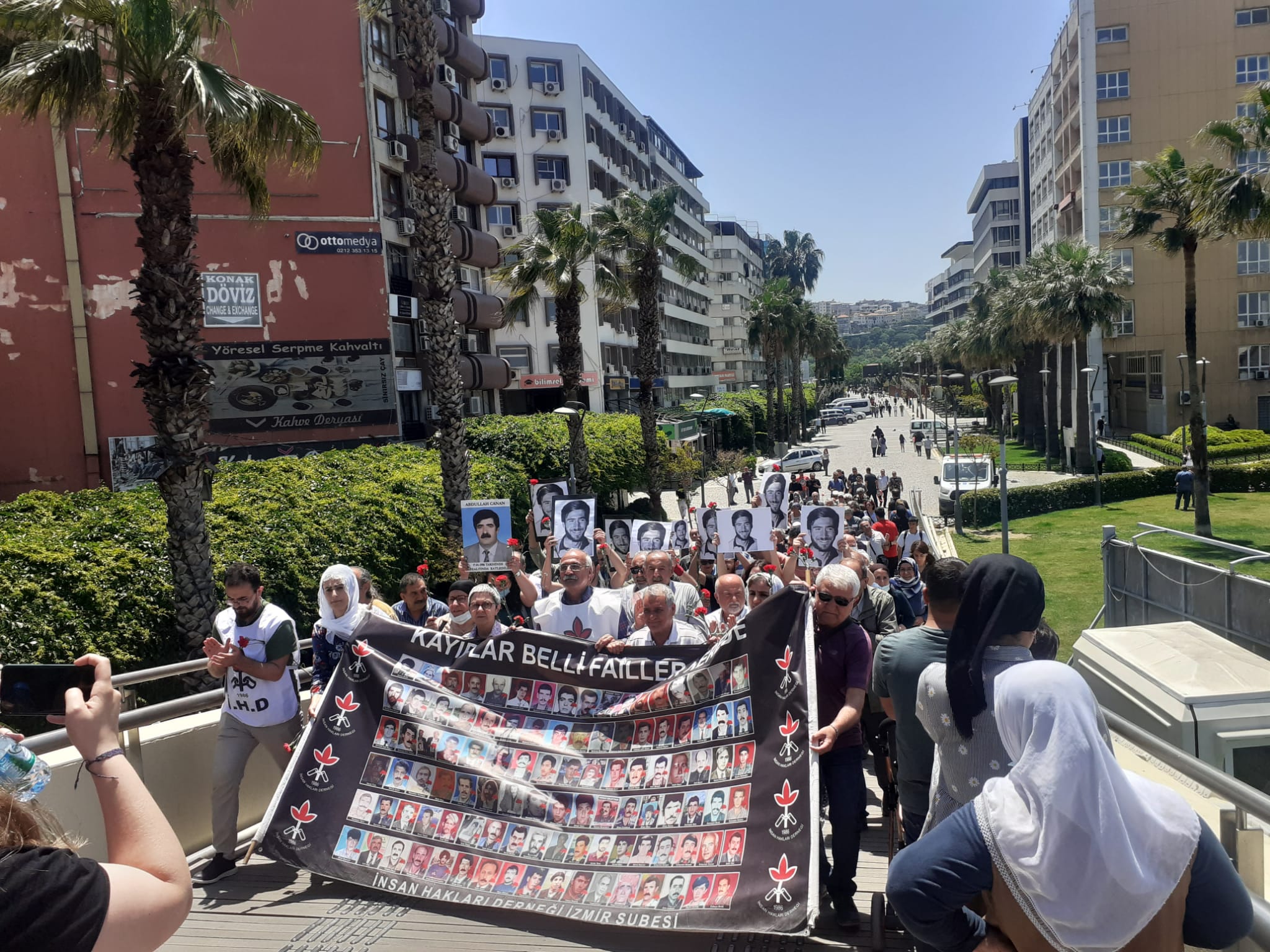 İnsan Hakları Derneği (İHD) İzmir Şubesi, bu haftaki Cumartesi etkinliğini Kayıplar Haftası nedeniyle, kaybedilenlere adayarak gerçekleştirdi. Kaybedilenlerin isimleriyle fotoğraflarının da sergilendiği basın açıklamasında 10 dakikalık oturma eylemi de yapıldı. Basın Açıklaması sonrasında insan hakları savunucuları Pier Üst Geçitinden pankartla yürüyerek deniz kıyısına geçti ve denize kaybedilenlere saygı ifadesi olarak kırmızı karanfiller bıraktı.