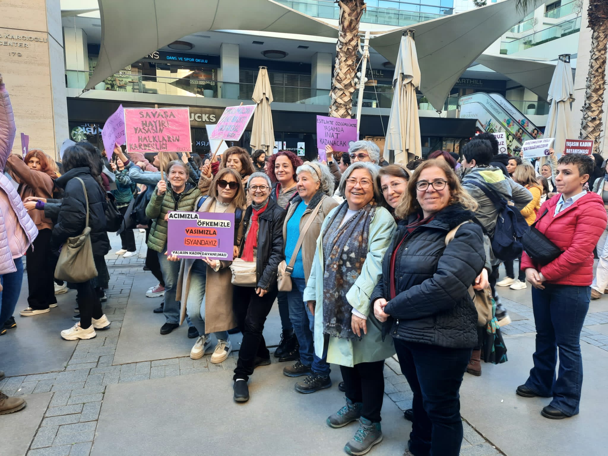 Tüm bunlar yaşanırken biz kadınlar, yaralarımızı sarmak için alanlardaydık, yurdun dört yanından ped, mama, bebek bezi, hazır gıda, iç çamaşırı toplayan, bunu örgütleyen hem bölgedeki hem de bölgeden göç etmek zorunda bırakılan binlerce kadının ihtiyaçlarını karşılamak için dayanışma kampanyaları başlatan bizlerdik. Coğrafyanın her yanından arama kurtarma için, güvenli barınma alanları oluşturmak, ihtiyaçları ulaştırmak için kadın dayanışması ruhuyla yollara düştük. Biliyoruz ki yeni yaşamı kurmak bizim elimizdedir. Bu iktidarın yok ettiklerine rağmen yeni bir yaşamı başarmak bizim dayanışmamızla, örgütlülüğümüzle mümkündür. Kadınları işsiz ve güvencesiz bırakmayı kendine iş edinenlere sesleniyoruz 8 Mart tarihsel sorumluluğu gereği yeni başlangıçlara gebedir. Bu da sizin sonunuzun başlangıcı olacak! Bugün bu alanı, sokakları dolduranlar yaptıklarınızın hesabını soracak. Yıllardır ülkeyi kadın cinayeti cehennemine çevirenler bilsin ki, kaderci düzeninizi yıkacağız kadının emeğin yaşamın düzenini eşitlik ve özgürlük temelinde kuracağız.