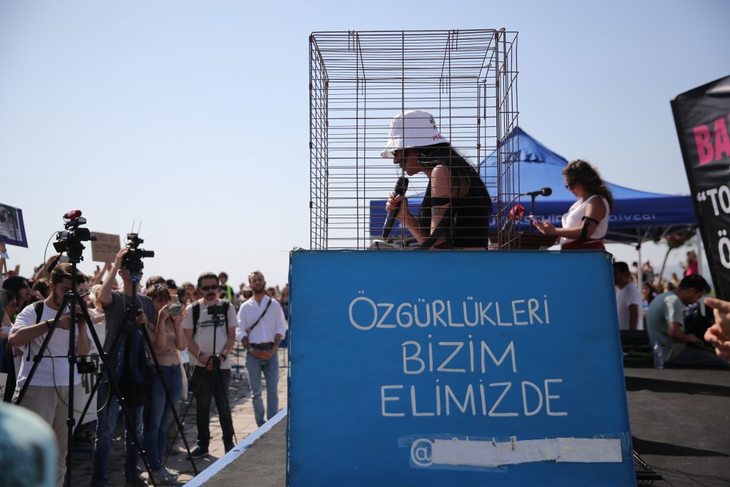 Hayvan hakları savunucusu örgütlerin ortak basın açıklamasını Pınar Alp Asil kafes içerisinde okudu. Açıklamanın tam metni şöyle: