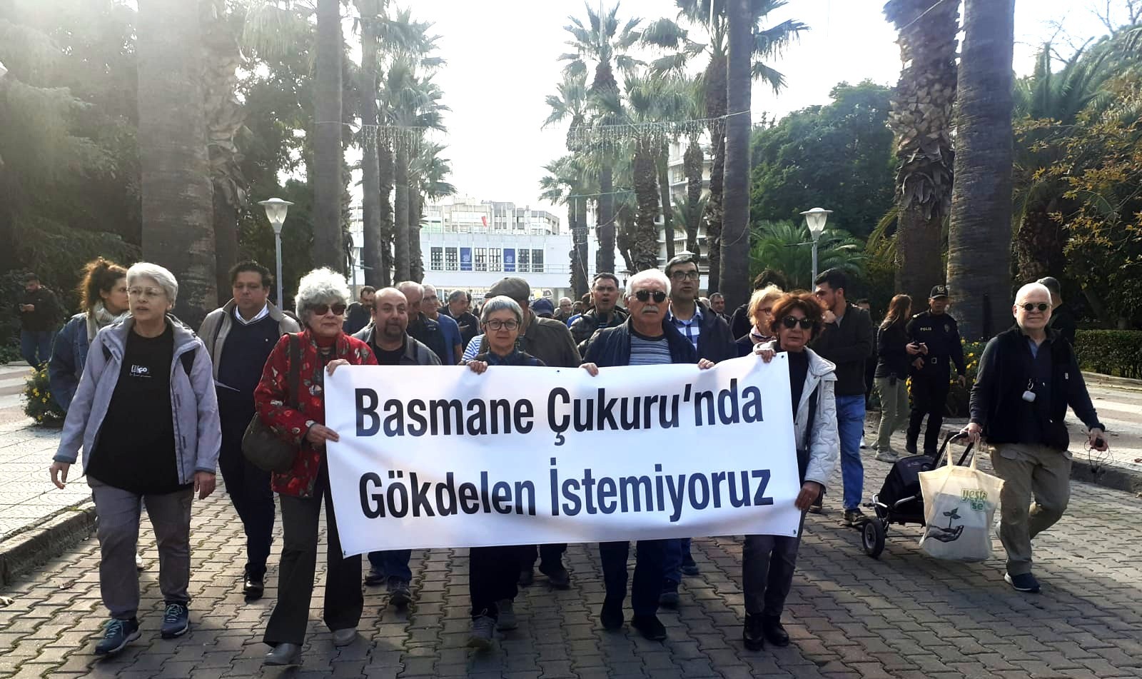 İzmir’de siyasi partiler, meslek odaları, sendikalar, kitle örgütleri, çevre örgütleri ve dostluk–dayanışma kurumlarından oluşan 165 kurum, kamuoyunda “Basmane Çukuru” olarak bilinen ve kentin merkezinde yer alan tarihi bölgenin yeniden yapılaşmaya açılmasına karşı Basmane Çukuru önünde bir basın açıklaması gerçekleştirdi.