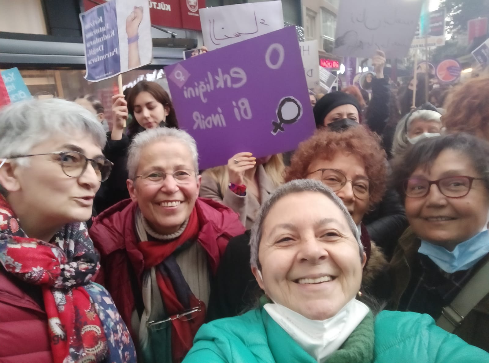 Şiddete karşı mücadele eden, yaşamına sahip çıkan, kadınların ve çocukların geleceğinin çalınmasına izin vermeyen tek adam rejiminin karşısında on binler olup sokakları dolduran, İstanbul Sözleşmesi’nden, haklarımızdan ve hayatlarımızdan vazgeçmiyoruz diyerek karanlığın üstüne el ele tutuşup yürüyen genç kadınlarız.