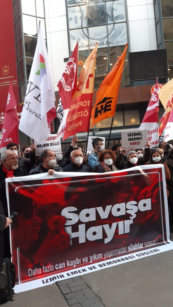 Emperyalist savaşlar dünyanın her yerinde kadınları yerinden ediyor. Göçmen kadınlar savaştan kaçarken göç yollarında tacize, tecavüze uğruyor, vardıkları topraklarda daha fazla yoksulluk, ayrımcılık, şiddetle karşı karşıya kalıyor. Savaş başlar başlamaz, Ukraynalı kadınlar hakkında ortalığa saçılan cinsiyetçi söylemlerinde gösterdiği gibi bu savaş kadınlara daha fazla sömürü, yoksulluk, ayrımcılık ve ölümden başka bir şey getirmeyecek. Biz kadınlar emperyalist savaşa karşı barış talebimizle sokaklardayız.