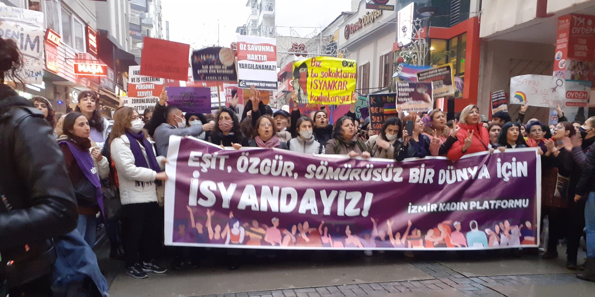 İstanbul Sözleşmesi’nden imzanın geri çekilmesine, kadınların vahşice katledilmesine, haklarımıza yönelik gerici saldırılara, krizin tüm yükünün üzerimize boca edilmesine, yoksulluğa, esnek, güvencesiz, kölece çalışmaya karşı isyanımızla buradayız.