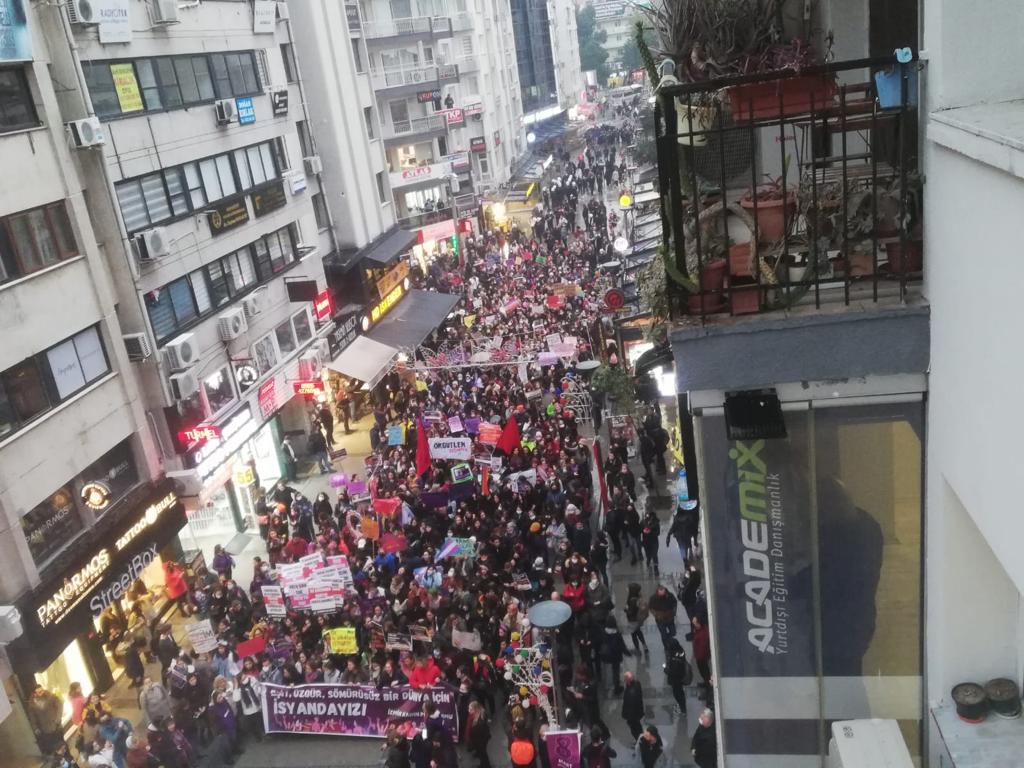 Feminist kadınları Leman Kafe önünden saat 20.00 de yapmak istediği yürüyüşe polis barikat kurarak engel oldu. Ancak birbirine ulaşmaya çalışan iki grup sonuçta bir araya gelmeyi başardı. Bu sırada polis saldırısı sonucu iki genç kadının gözaltına alındığı bilgisi geldi.